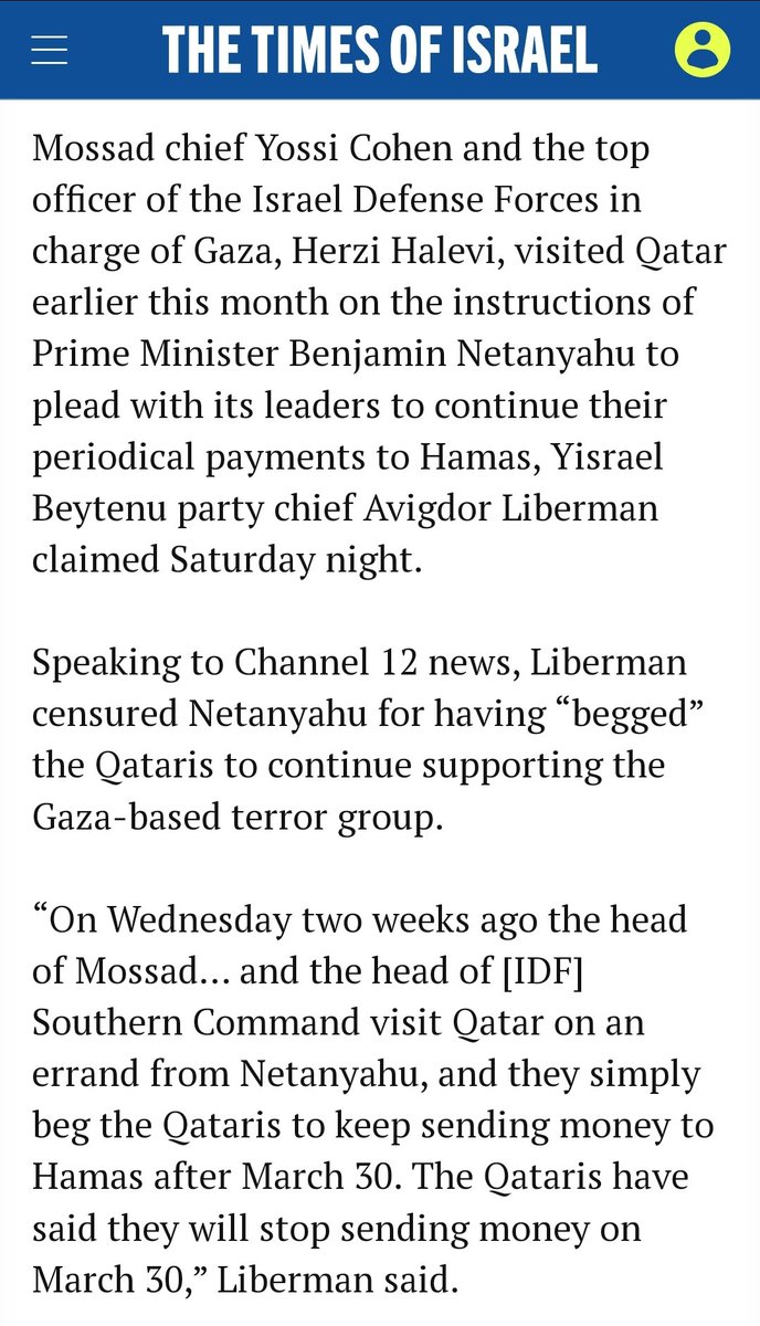 • Adam Green - Know More News @know_more_news · Twitter · 2023-10-10 04:42 UTC FLASHBACK 2020: Israeli politician says Netanyahu and Mossad 'begged Qatar to fund Hamas'.