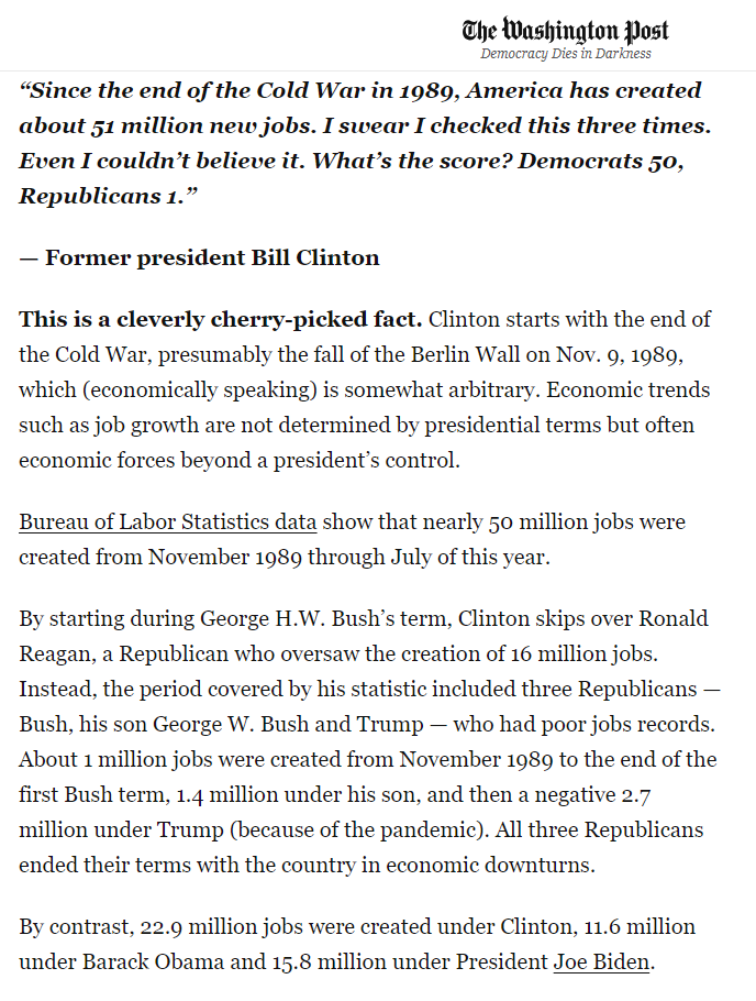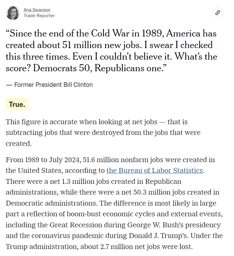 Vivid illustration here of how easily fact-checking can turn into take-slinging. Same statement; NYT straightforwardly rates it "true," while Glenn Kessler at WaPo hems and haws about how he'd prefer a different way of looking at it.