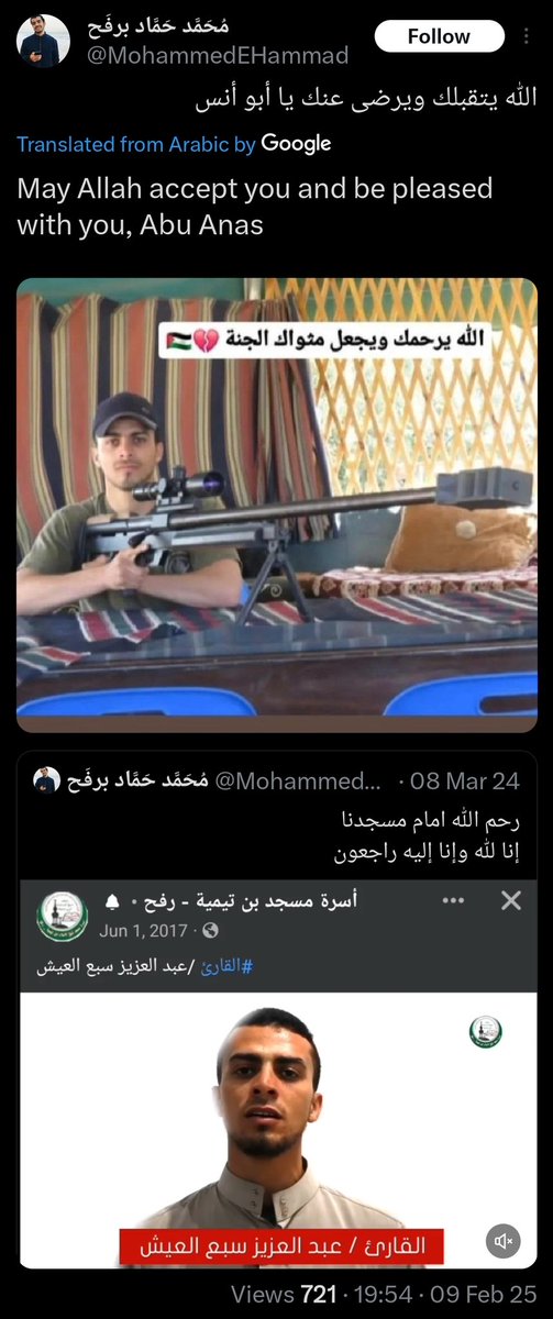 • Adin - عدین - עדין @adinhaykin1 · Twitter · 2025-02-09 23:13 UTC Back in March 2024: An innocent religious clerk Today: A Hamas sniper