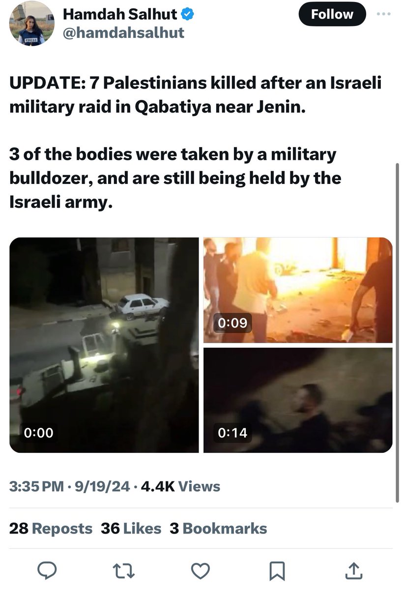 If you want to see the entire problem with the reporting related to Israel. This is an AJ English reporter saying 7 “Palestinians” killed. That is how countless reporters framed it. On the right is Islamic Jihad announcing all 7 deaths of their militants.