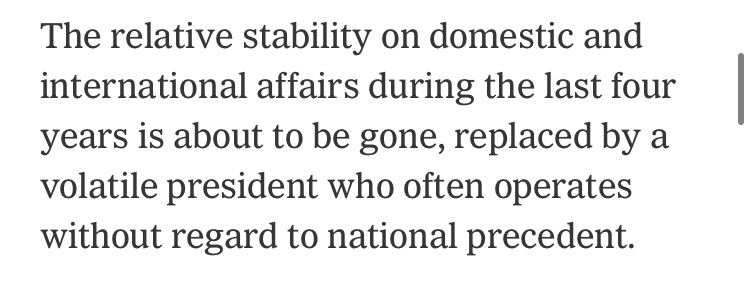 Hilarious. Imagine the bubble you have to live in to think the last 4 years have been defined by relative stability…