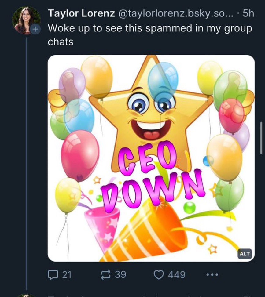 I think she desperately needs to seek professional help. Apparently she spent the entire day justifying a targeted assassination against a health insurance exec. The bigger issue is that The Washington Post gave her a platform and defended her for so long.