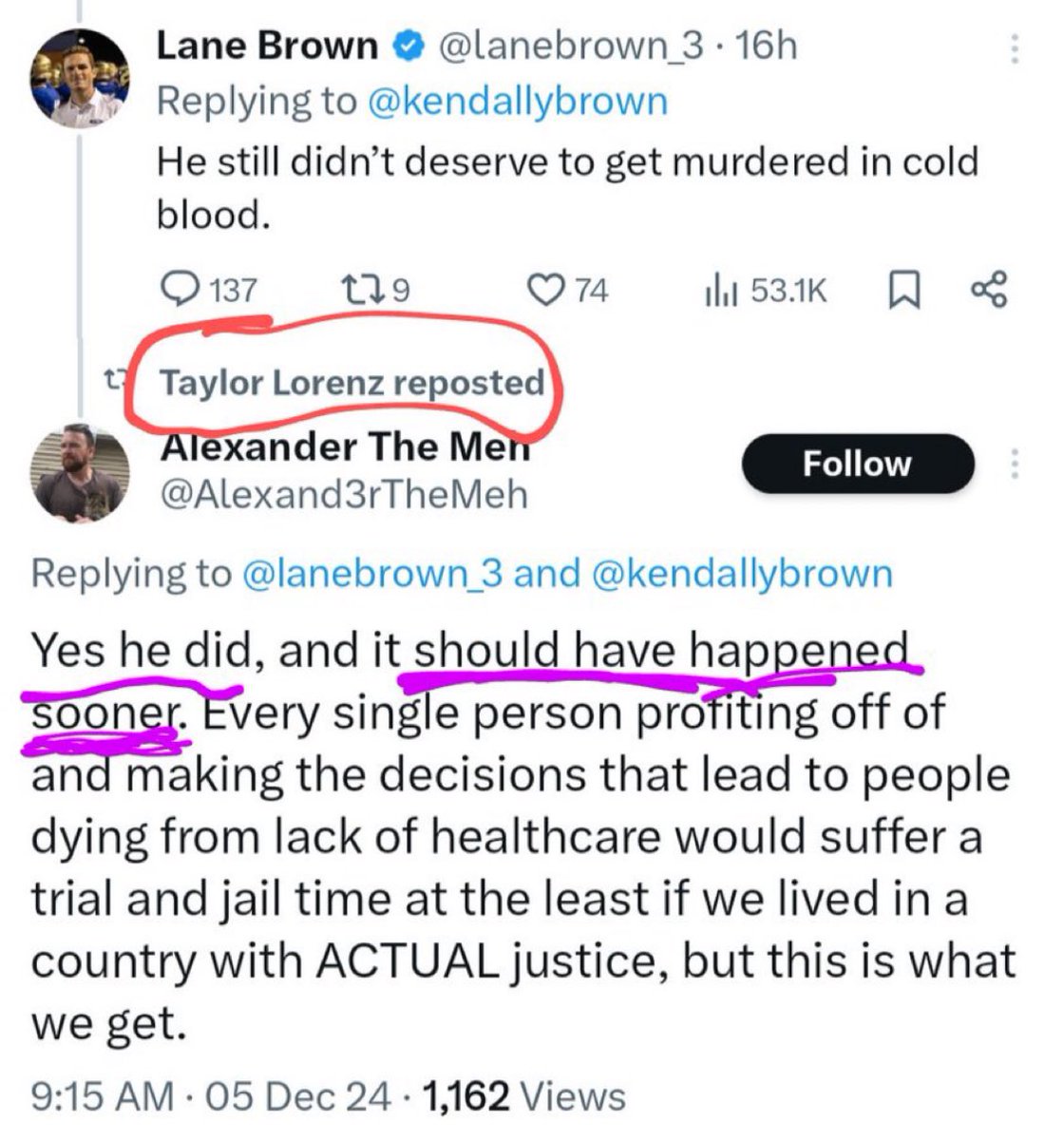 Again, Taylor Lorenz has been this person for some time. The Washington Post continued to publish and defend her until very recently. Because being a fringe far-left extremist is considered acceptable in media circles in a way that being far-right never would be.