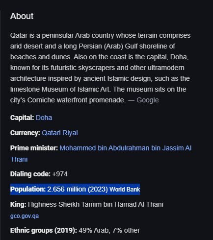 @AGHamilton29 Qatar has a population of 2.65 million.