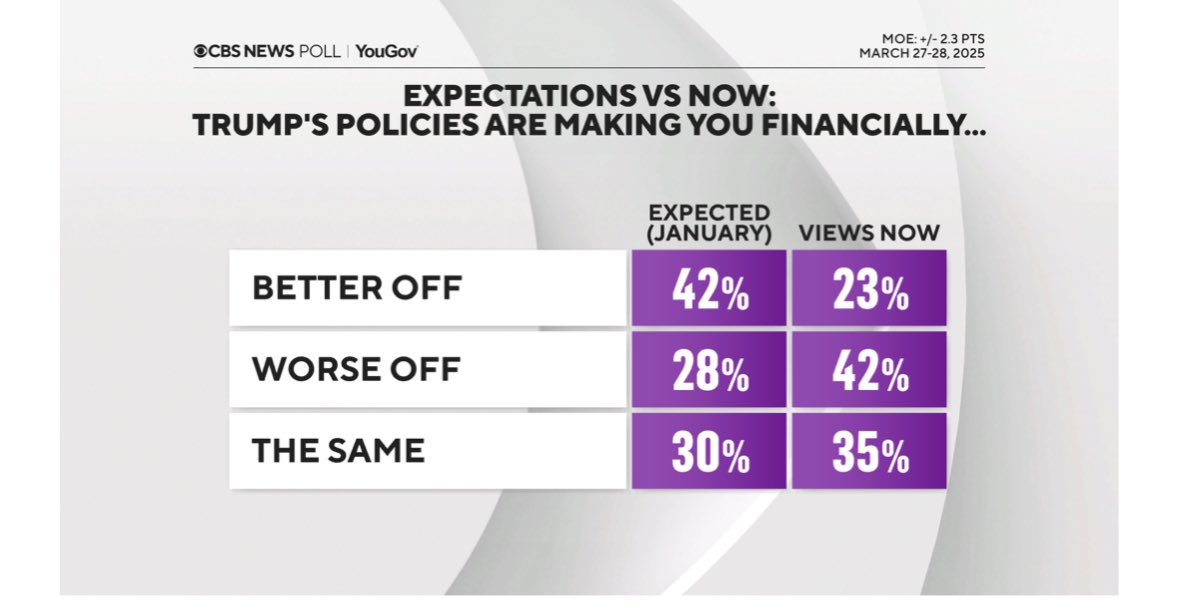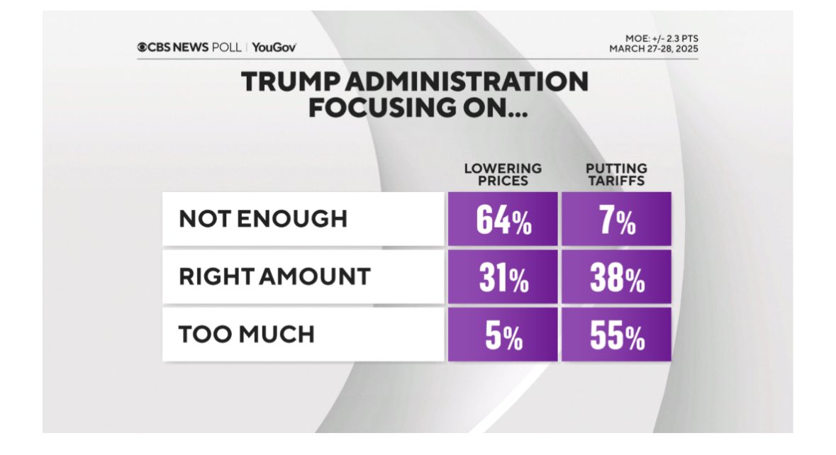 I’ve argued for weeks that unless the Trump team can do a better job convincing Americans of the payoff, tariffs will undermine the rest of their agenda. You can see it directly in the latest poll numbers. Optimism over his econ policies has dropped 19 points since January.