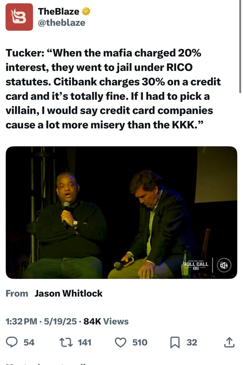 AG @aghamilton29 · Twitter · 2025-05-19 23:55 UTC Everyone knows the biggest problems with the mafia and the KKK were that they charged really high interest rates for loans. I must have missed those RICO indictments.