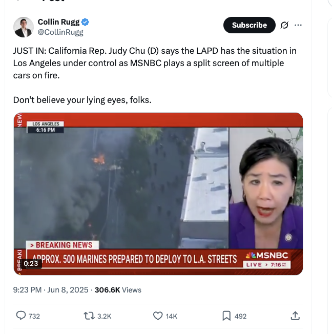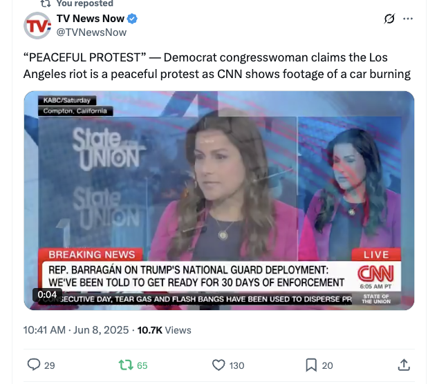 AG @aghamilton29 · Twitter · 2025-06-09 03:04 UTC Democrats are just going on television and embarrassing themselves just to try to downplay the violence and avoid criticizing those responsible for it...