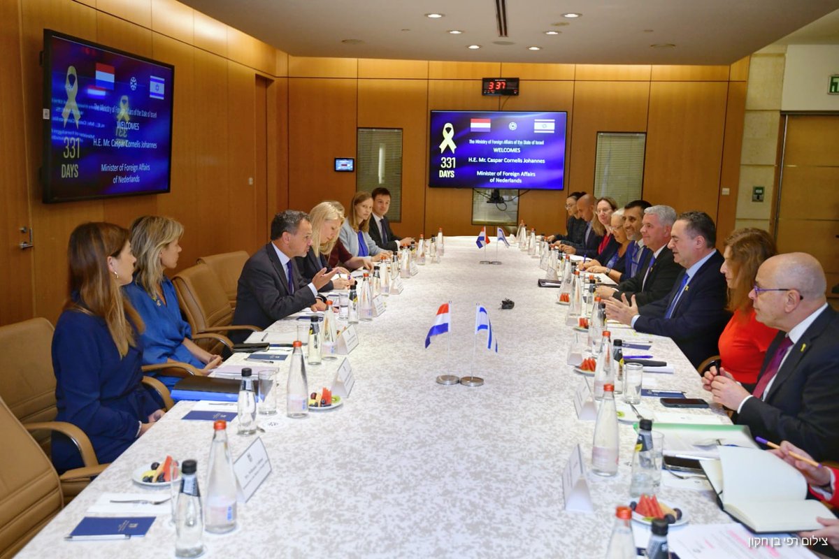 Today, on a devastating day, we welcomed the Dutch Minister of Foreign Affairs Caspar Veldkamp. He expressed his condolences on the six hostages that were murdered by the terrorists of Hamas. Israeli Minister of Foreign Affairs Israel Katz called for more international pressure on Hamas to immediately release all the hostages. We appreciate the Dutch friendship, supporting the security of Israel.
