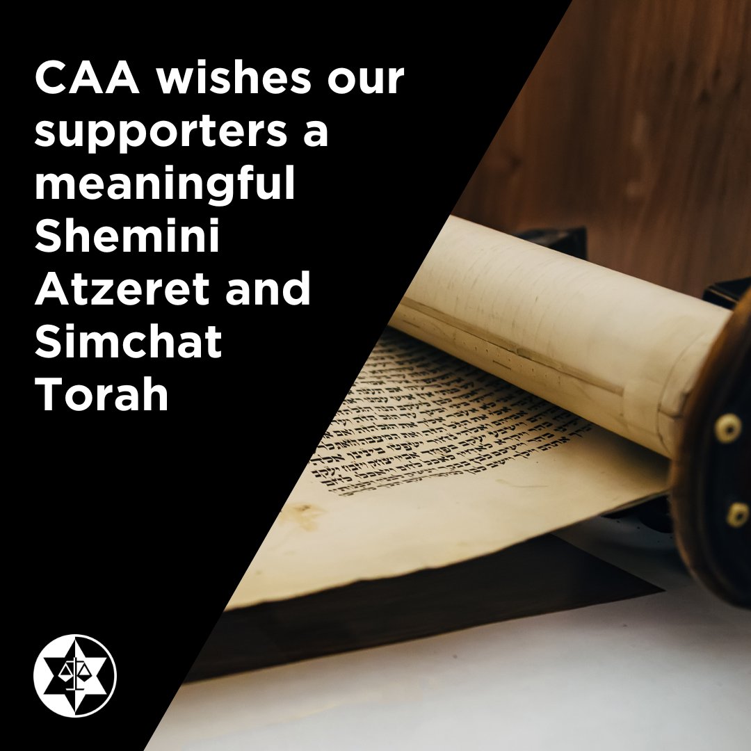 CAA wishes our supporters a happy Shemini Atzeret and Simchat Torah. This year, these festivals, while joyous, are tinged with the memory of what took place at this time last year. We remember those murdered on these days twelve months ago, and mourn their absence. May their memory be a blessing.