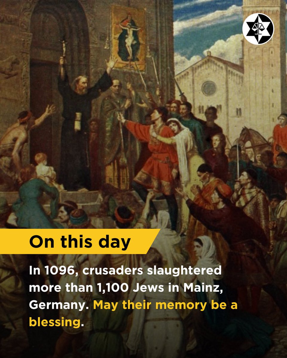 On 27th May 1096, the Mainz massacre took place. It was part of the wider Rhineland massacres, also known as the German Crusade of 1096. Despite imperial orders from Emperor Henry IV to protect the Jewish communities, Count Emicho and his followers defied these commands and carried out a massacre of more than 1,100 Jews in Mainz. The Mainz massacre was the deadliest event in the Rhineland massacres. May their memory be a blessing.