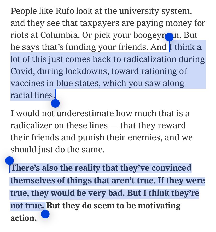 Many intelligent people have not yet accepted how radical COVID-era governance was. E.g. I suggested to Ezra Klein that both sides can be accused of friend-enemy politics, and he changed the subject to lies Republicans believe. It’s hard to look this stuff in the face.