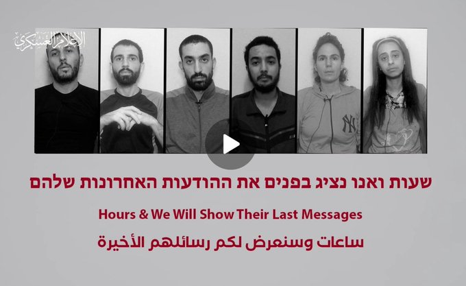 Hamas has announced that it will release a video showing the six Israeli hostages it murdered last week shortly before their deaths. It's already released a preview. When we say Hamas is like ISIS, this is what we mean. Hamas isn't just a "bad player." It's evil.