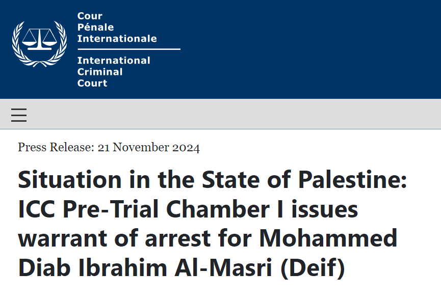 In order to create a false impression of fairness, the International Criminal Court also issued an arrest warrant for Hamas military leader Mohammed Deif... who is dead. That should tell you just how ridiculous and politically motivated these warrants are. The ICC is a joke.