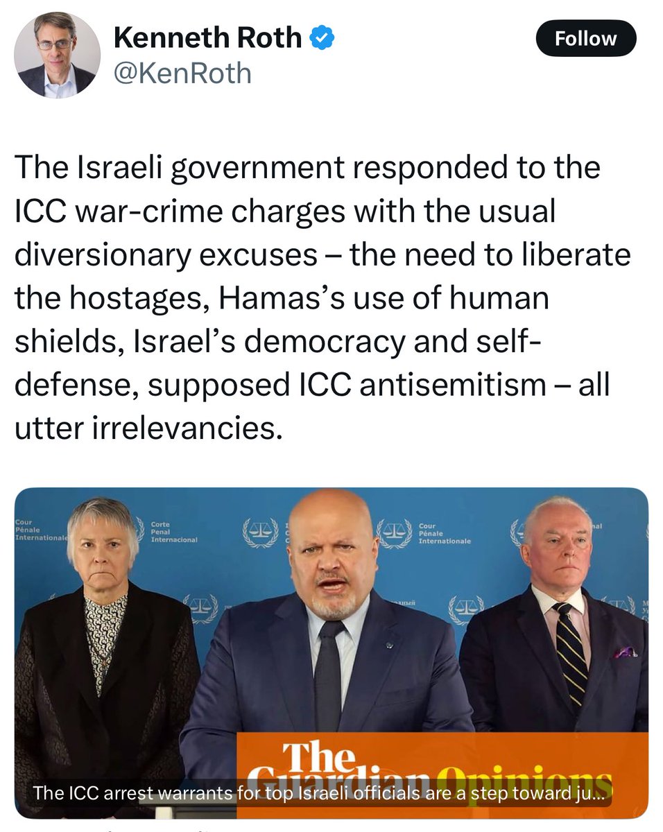 It is pretty extraordinary that the former head of Human Rights Watch dismisses the plight of Israeli hostages as an ‘utter irrelevance’. This group’s concern for human rights was always paper thin on his watch- and conditional upon said human not belonging to a particular race