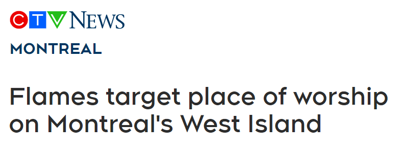 • Avi Mayer אבי מאיר @avimayer · Twitter · 2024-12-19 11:49 UTC Those dastardly flames targeting random ol' places of worship in Montreal! (A synagogue was firebombed. This was the headline. It's incredible that media organizations get away with this crap.)