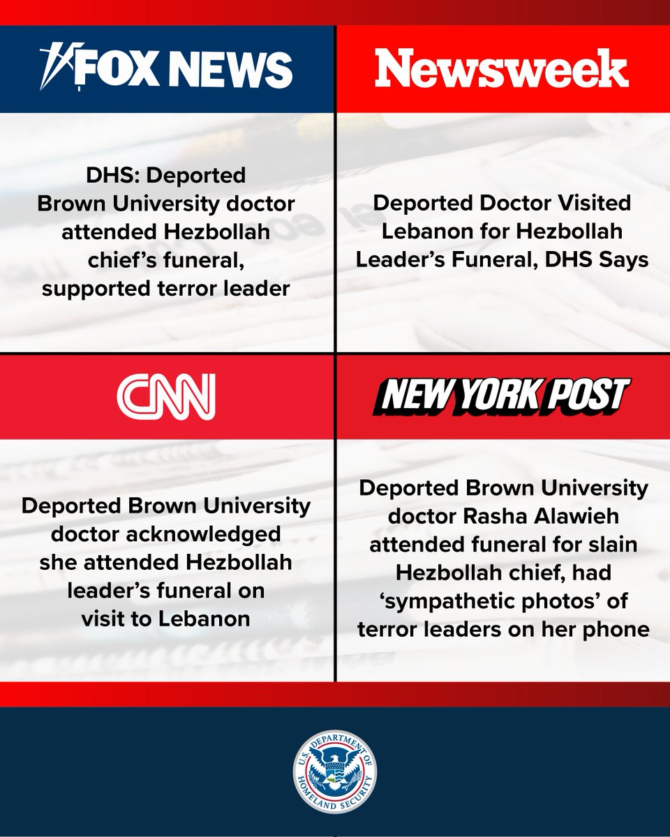 • Avi Mayer אבי מאיר @avimayer · Twitter · 2025-03-19 13:07 UTC Now do @jacksonhinklle. Homeland Security @dhsgov · Twitter · 2025-03-18 18:20 UTC Bye-bye, Rasha 👋
