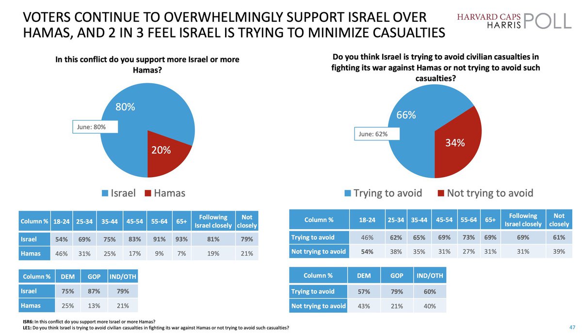 Kyle, respectfully, this would be political suicide. You listen too much to your comrades. This is the Harvard/Harris Poll. A supermajority of Americans and a majority of our party want Hamas terrorists finished off. Pro-Hamas is not the majority. They’re the lunatic fringe.