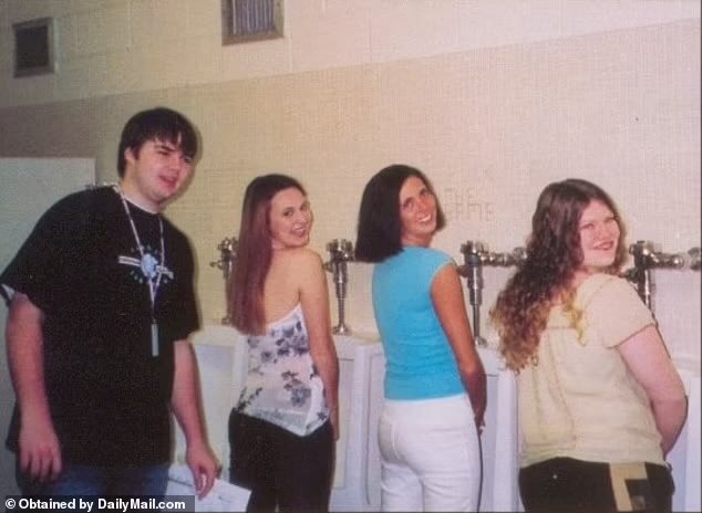 He’s weird. JD Vance poses with three high school girls in a boys restroom as they pretend to use the urinals.