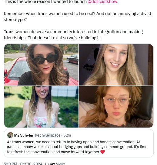 I literally do not understand this criticism of @kelly_cadigan. That infamous TikTok is obviously a joke. I think it's a funny one. Which is why it's in the opening of every episode. No serious person could think Kelly wants gay men to transition. We are pro-joke on Dollcast.