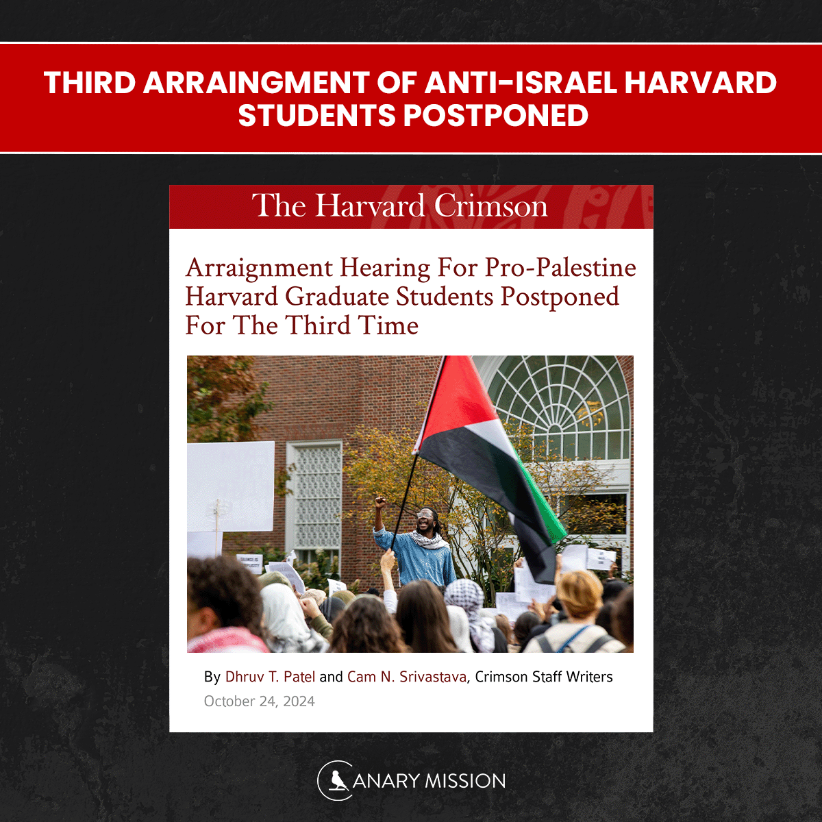 One year after the alleged assault of a pro-Israel student by @Harvard graduate students Elom Tettey-Tamaklo and Ibrahim I. Bharmal, Harvard appears to be stonewalling the DA in their investigation yet again. Isn't this illegal? https://www.thecrimson.com/article/2024/10/24/graduate-students-arraignment-postponed/