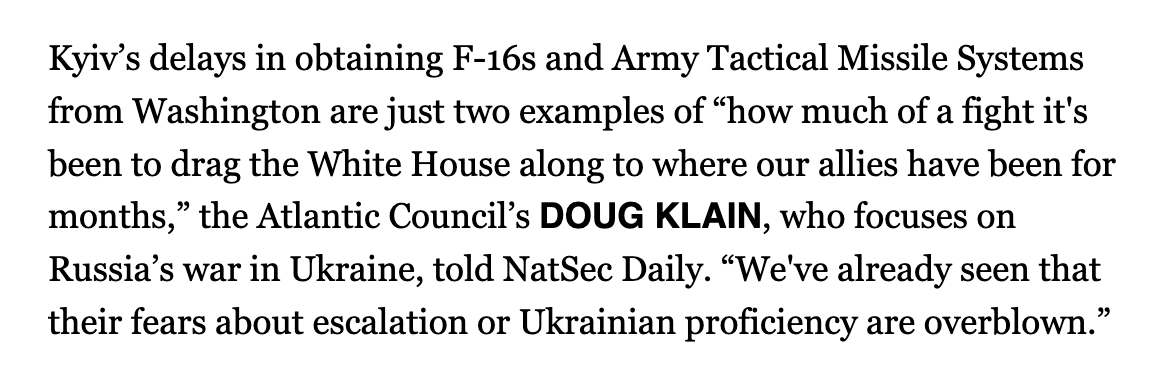 Our allies want to send airpower to Ukraine and are already sending long-range strike capabilities, to tremendous results. It shouldn't have to be such a fight to get the White House to send Ukraine what it needs to win. My comment for @politico's NatSecDaily today👇
