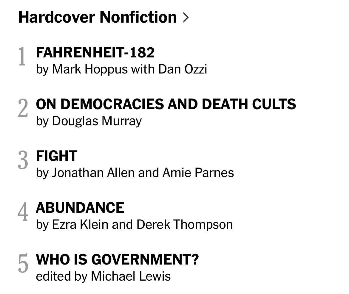 Straight in at Number 2 on the New York Times (@nytimes) bestsellers list! Thank you to everyone. And if you haven’t yet got your copy pick one up here or wherever books are sold: https://www.amazon.com/Democracies-Death-Cults-Israel-Civilization/dp/0063437139/ref=zg_m_bs_g_books_m_sccl_54/140-8915828-6397443?psc=1