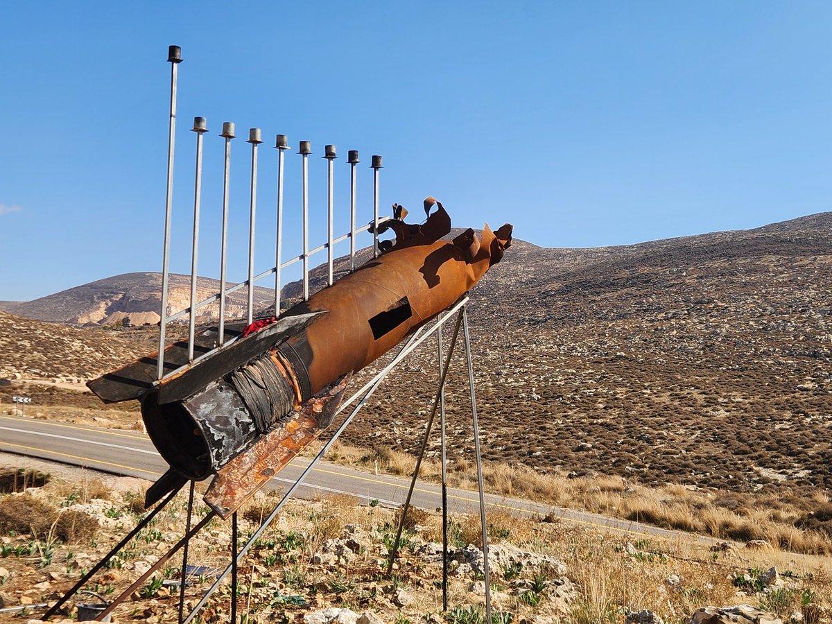 A Hanukkah menorah in Israel 🇮🇱, built from remnant of an Iranian 🇮🇷 ballistic missile 👇 So the Islamic Republic's tens of billions of dollars that went into ballistic missile production weren't completely useless after all 🤣 Credit: @avrahambin