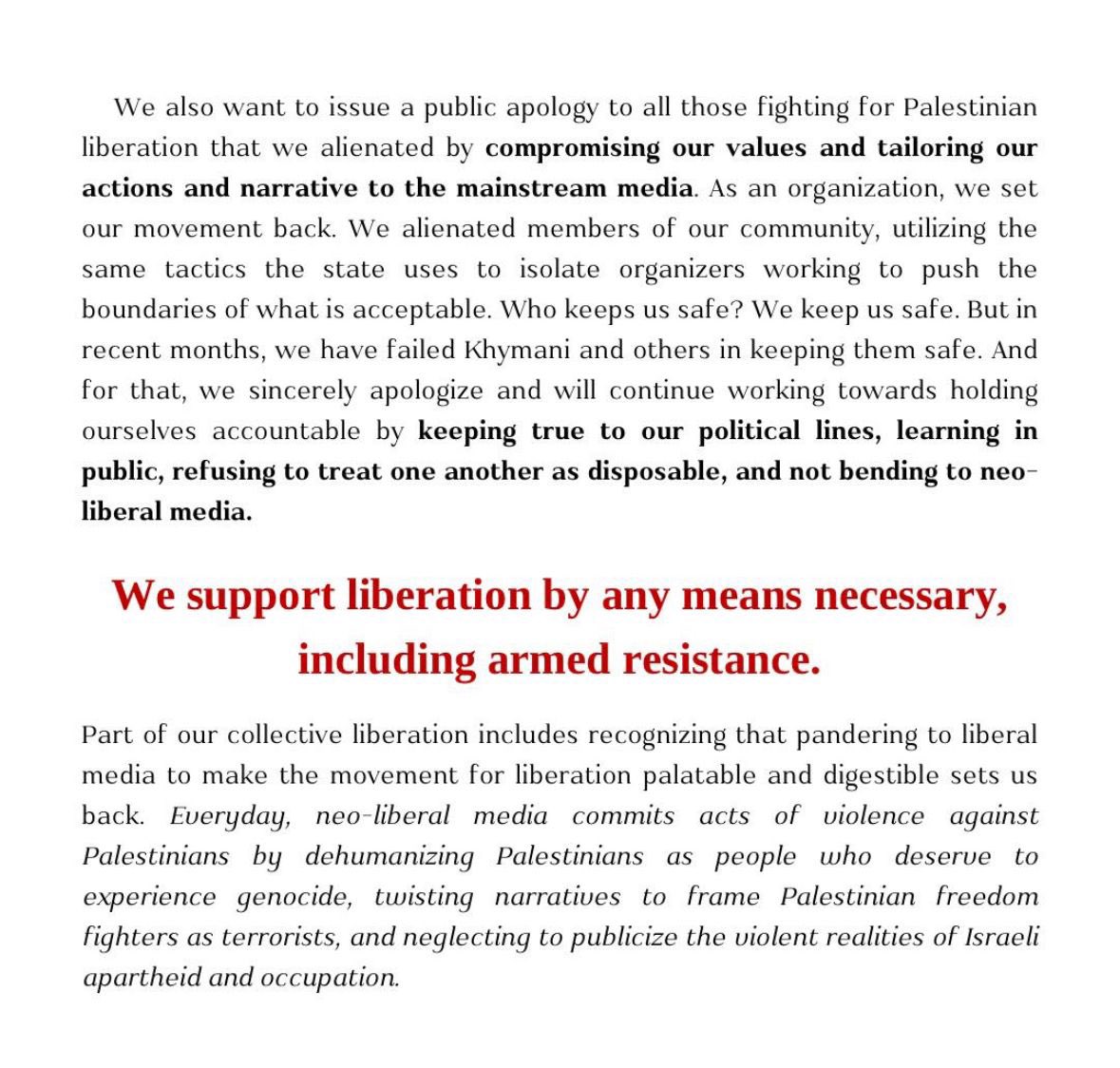 “We support liberation by any means necessary, including armed resistance” - @ColumbiaBDS @Columbia we’re still waiting to see your plan to address the fact that your students are proudly supporting U.S. designated foreign terrorist organizations like Hamas and Hezbollah.