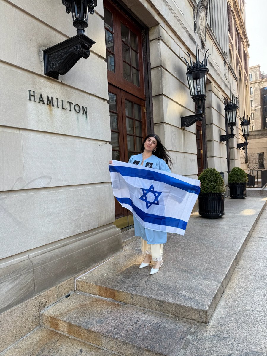 A year ago, a banner calling for intifada hung from this building. Today on Yom Ha’atzmaut (and coincidentally my last day of college classes!), we celebrated Israel’s existence outside of it. The Jewish community at @Columbia is not going anywhere. Happy birthday @Israel! 🇮🇱🇺🇸