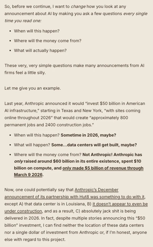 It’s time for all of us - especially the media - to start flexing our critical thinking muscles and ask very basic questions towards the AI boosters, such as "is this deal real?" and "did anybody actually spend money?" and "what does any of this mean?" https://www.wheresyoured.at/premium-how-much-of-the-ai-bubble-is-real/