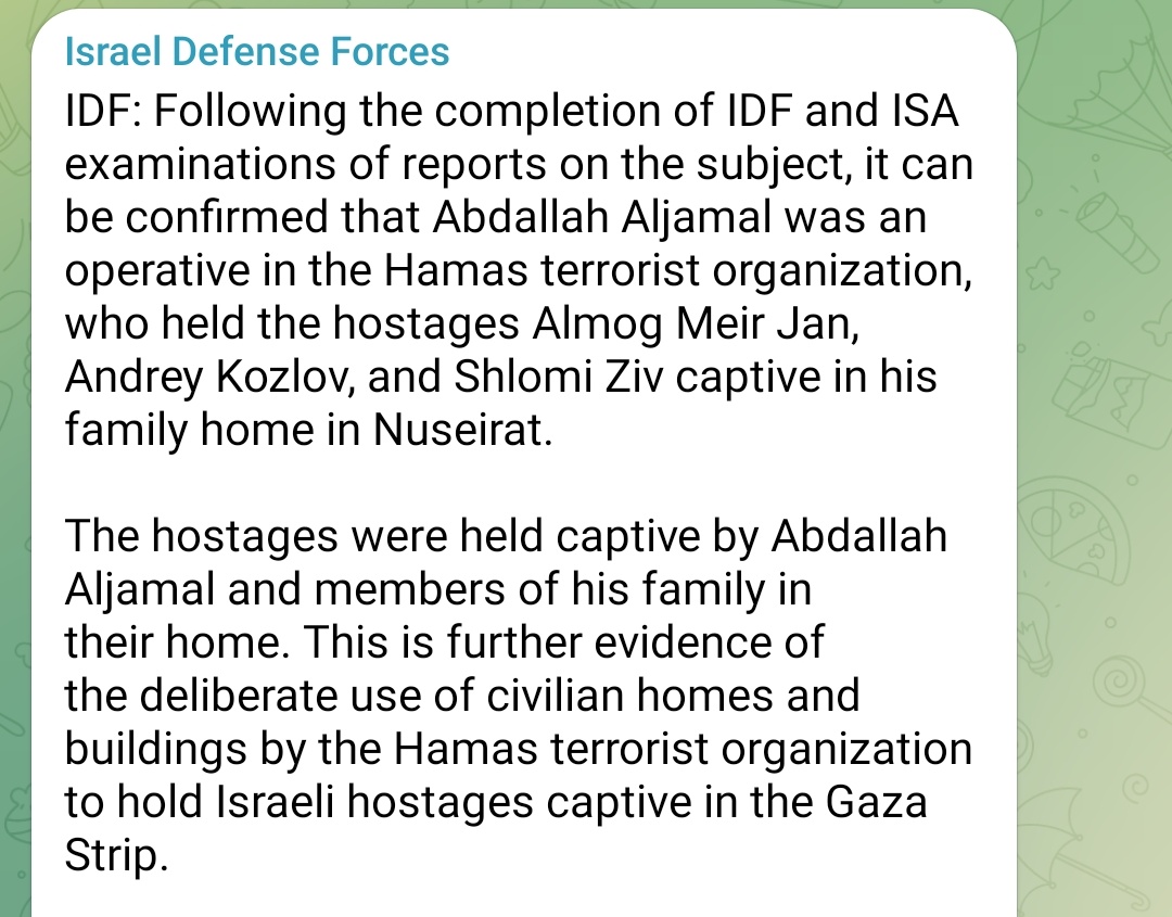 🚨CONFIRMED BY IDF🚨 Abdallah Al-Jamal, journalist for the 501c3 Palestine Chronicle, held three of the four Israelis hostage in his home in Gaza. THIS IS MASSIVE.