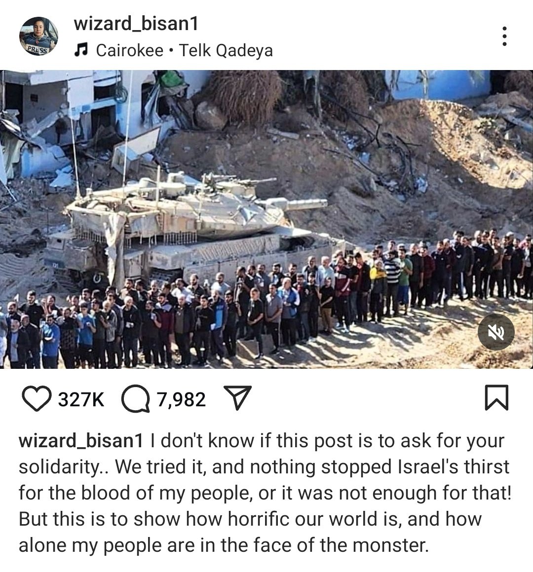 I spent months warning people about Bisan Owda, the PFLP member who was nominated—and now won—an Emmy award. I warned about the blood libels and disinformation she was constantly spreading. Now, her lies have reached their zenith, with 330,000 likes in just 13 hours. In one single post, she refers to "thirst for blood" and appropriates the Holocaust by inventing—out of whole cloth—that Israel is separating the strong from the weak in Gaza in a single file line and then either executes them, burns then alive, rapes them, or steals their organs. Congratulations, @AdamS. You gave this person television's highest honor.