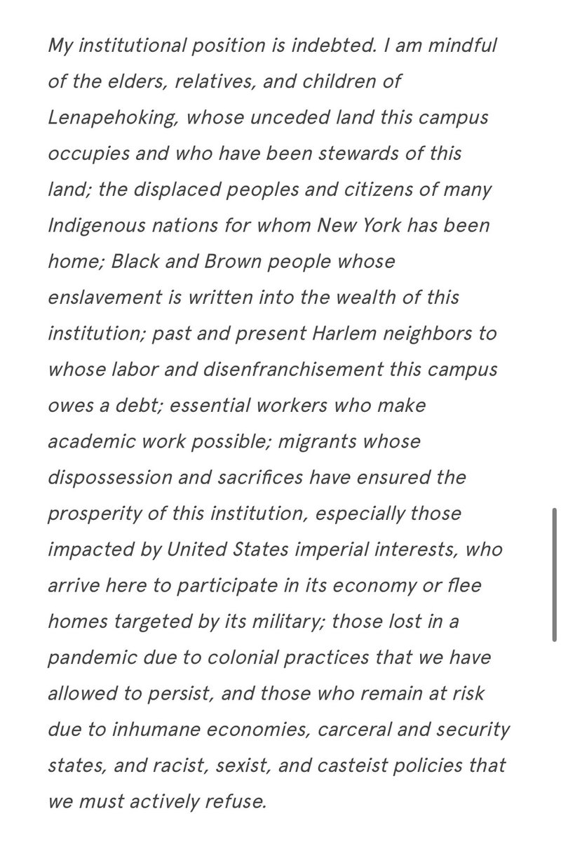 No surprises here: @BarnardCollege is offering an ARCHITECTURE course on Palestine next year. Don’t worry though, the professor makes sure to recognize the indigenous Lenape land on her website. God forbid we forget the land acknowledgement!