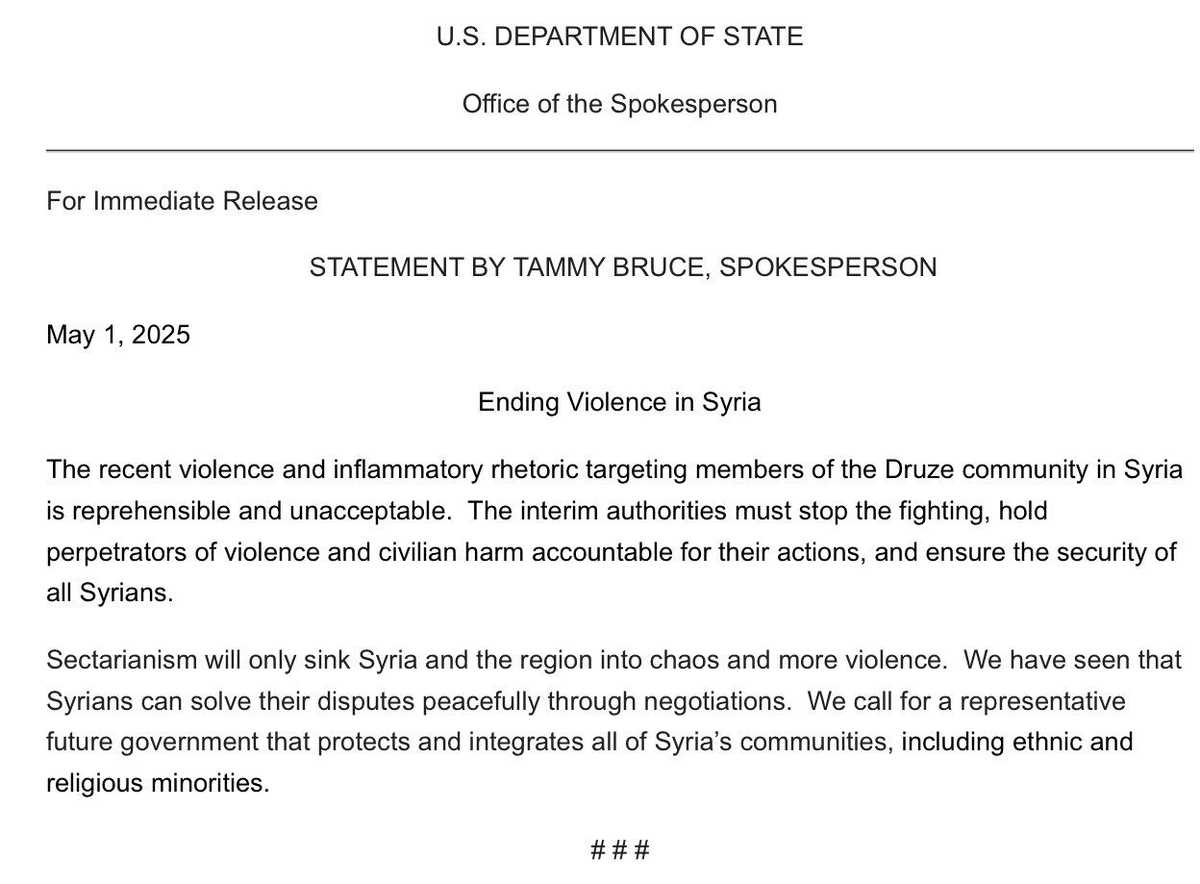 Overnight, Israel launched an airstrike near the presidential palace in Damascus. It's warning Jolani not to move troops south of Damascus or harm the Druze. The Trump administration has just denounced violence against Druze and called for their full protection by Damascus.