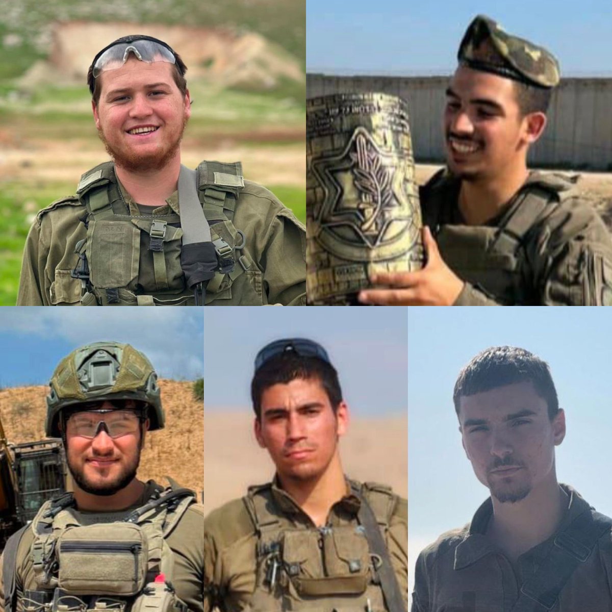 🕯️Staff Sergeant Meir Shimon Amar, 20, 🕯️Sergeant Moshe Nissim French, 20, 🕯️Staff Sergeant Noam Aharon Musgadian, 20, 🕯️Sergeant First Class (Res.) Benyamin Asulin, 28, and 🕯️Staff Sergeant Moshe Shmuel Noll, 21 All fell in combat in the Gaza Strip yesterday. Fourteen more soldiers were wounded in the roadside bomb attack. 888 Israeli soldiers have fallen in the October 7 War. May their memory be a blessing.