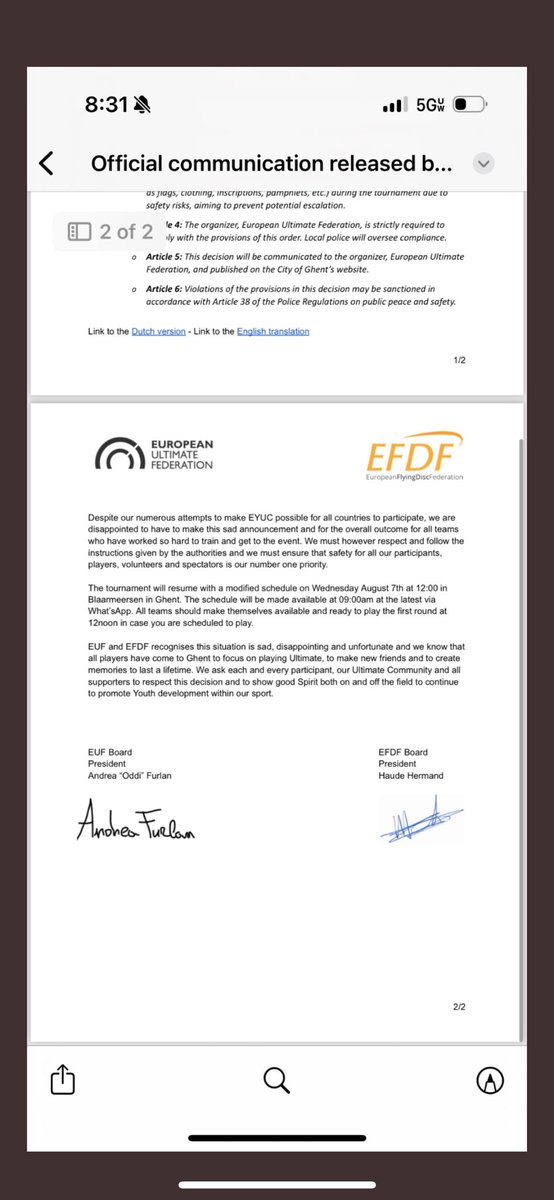 UNREAL story unfolding in Belgium. Israeli children, after being the victims of targeted disgusting vandalization, have been singularly banned from competing in the U17 European Championship for Ultimate Frisbee, ostensibly “for their own safety” EUF, and Israeli response below
