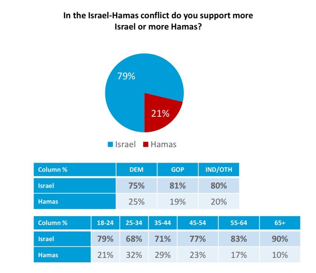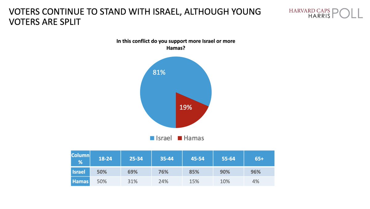 Young people are waking up: In the Harvard-Harris poll conducted a few months ago, it found 18-24-year-olds were split 50/50 on support for Israel or Hamas (left photo). In their most recent poll (right photo), it found that 79% of them support Israel.