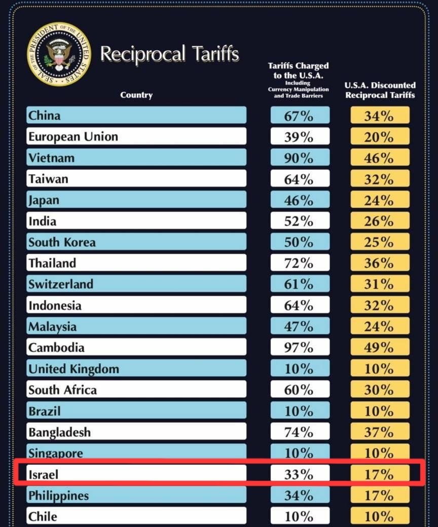 This is...an unwise move, America. Israel cut tariffs to zero, as asked, and still faces a huge 17% tariff. Because it's not really a "reciprocal tariff." That's a stupid lie. It's a punishment for our trade deficit. But here's the thing, America. We literally can't prevent that trade deficit. We consume a LOT of American goods. But lots of that consumption - McDonald's and Coca-Cola, for example - is via local subsidiaries established here by those companies. It doesn't count in the "import" side of the ledger. And Israel is a tech-heavy exporter. You keep buying our tech (and our tech companies) for vast sums while our population is just too small to buy as much from you. In other words, our trade deficit is a function of how valuable you find our tech, of our usefulness to the American economy, and especially the tech and defense industries. Long story short, you're punishing us for things we can't control - and for the very things you find most valuable about us. And there's nothing we can do to change it. I'll put it bluntly, as a genuine lover of America: This is screw-balls. This is not a policy. This doesn't incentivize favorable trade with you. This is telling the world you're not trying to make sense or seriously pursuing your own interests. You're just raging. Our products are good enough to be desirable everywhere. Even our enemies want them. If you decide, for no reason any American official can currently explain, that we can no longer sell them to you, we will still find buyers. So help me out, Americans. What the hell is going on here? We're small, you won't notice if our trade goes elsewhere. But you're doing this to everyone. If you didn't do your homework on us, what are the chances you've done your homework on anyone else? How is this blind rage going to end well for ordinary Americans?