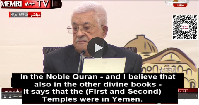 🧵Abbas claims ancient Jewish temples were in Yemen in April 23 speech—an antisemitic denial of Jewish history that also contradicts centuries of Islamic scholarship placing them in Jerusalem. This narrative is central to the PA's rejection of a Jewish state on any borders. 1/