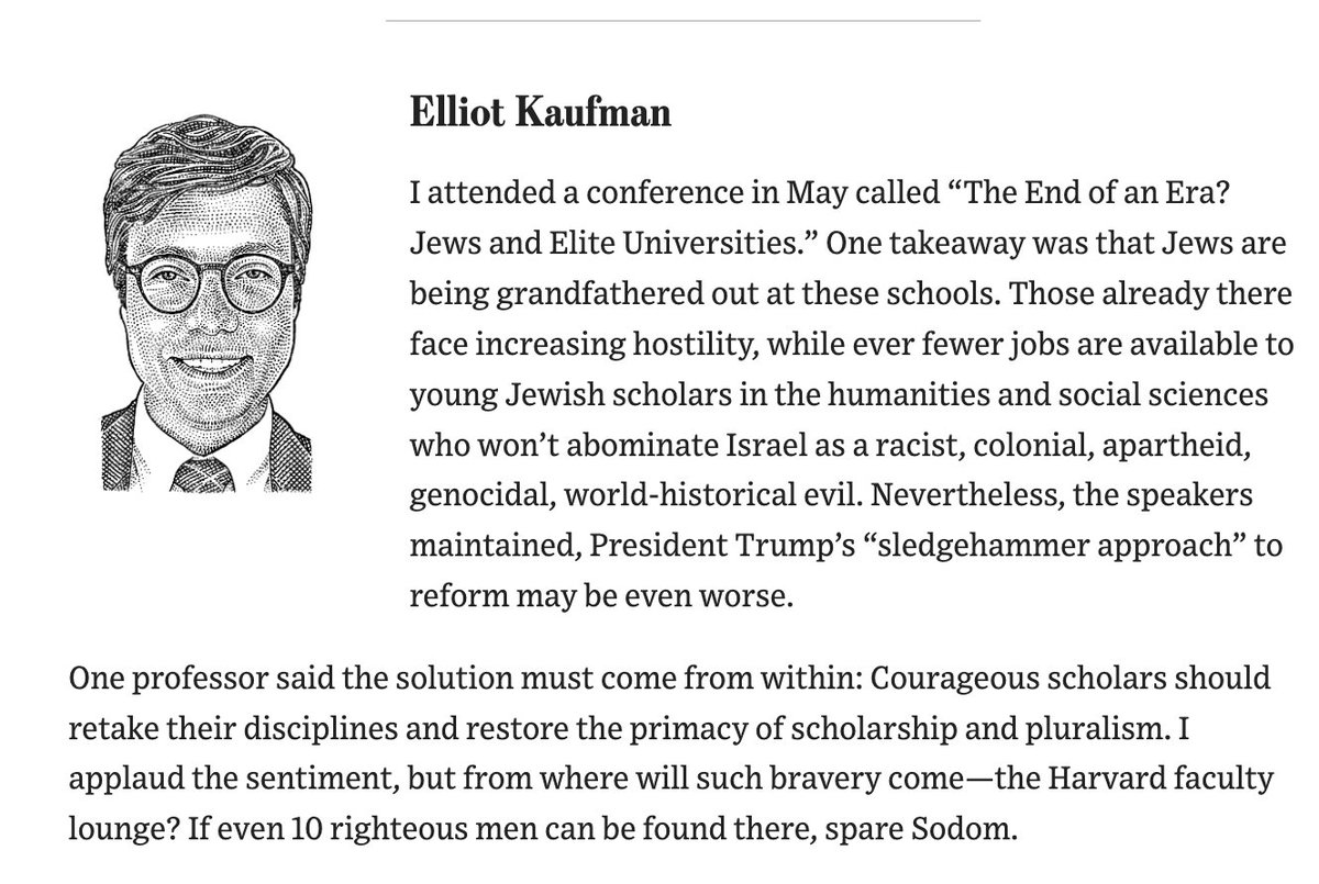 Haviv Rettig Gur @havivrettiggur · Twitter · 2025-06-08 21:56 UTC "Courageous scholars" has, alas, become an oxymoron. Elliot Kaufman @elliotkaufman6 · Twitter · 2025-06-08 14:36 UTC From my contribution to the WSJ editorial page's symposium on Harvard. Link below