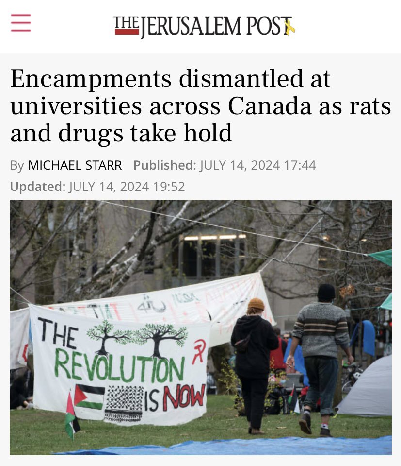 When reports of antisemitism, violence, and harassment against Jewish students didn’t work, rats and drugs finally did the job. Encampments at Canadian universities have finally been dismantled following a court ruling, and schools like McGill, Ottawa, and Waterloo have cleared these sites due to safety concerns. The camps, initially set up to "peacefully protest," quickly turned into hubs of harassment, drug overdoses, and rat infestations. At McGill, non-students and drug dealers took over, with protesters engaging in vandalism and violent clashes. University President Deep Saini noted that while free speech is valued, this wasn’t a peaceful protest but a safety nightmare. Universities are now left cleaning up the mess, facing damages and legal battles. Next time, maybe listen to Jews from the beginning, and don’t let these violent, unsafe and antisemitic encampments last for months?