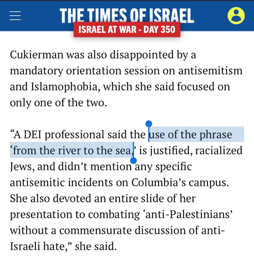 Remember that training Columbia University was supposed to implement to protect Jewish students? According to Jewish students it “trains” them that it’s okay to chant “from the river to the sea” and denies antisemitism on campus. A real training on antisemitism would be so valuable to these students. Instead, the “solution” is just becoming a new problem. Unruly students and freedom of speech issues are truly tricky territory for universities. Ensuring the quality of their antisemitism trainings is not. This clear negligence is a policy choice. Despicable.