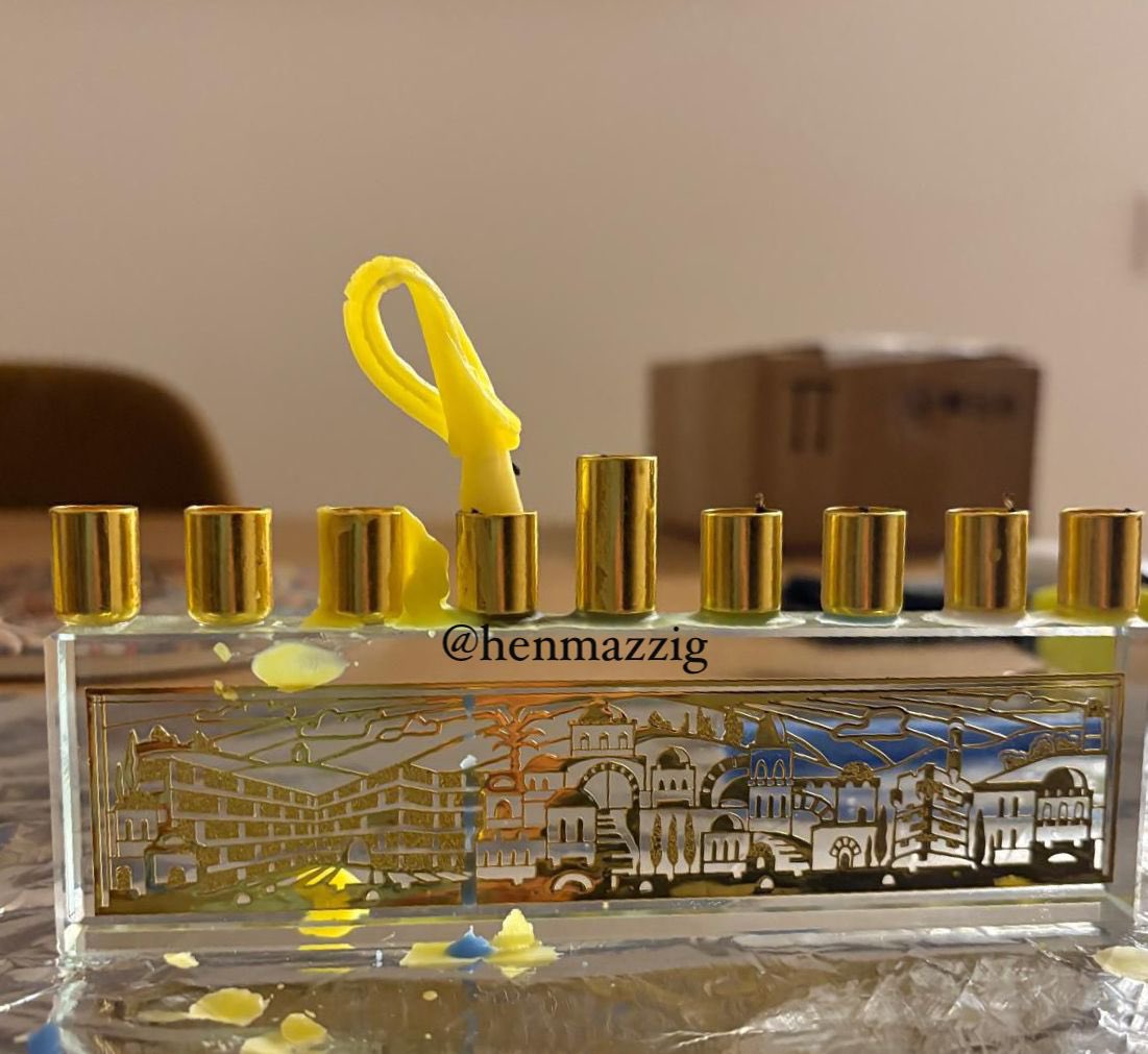 Last night, after lighting the 6th Hanukkah candle, the melted yellow wax formed a ribbon—a striking symbol of hope for the Israeli hostages in Gaza🎗️ In these dark times, we hold onto Hanukkah's light and its promise of miracles. This year, I pray for just one: Bring them home.