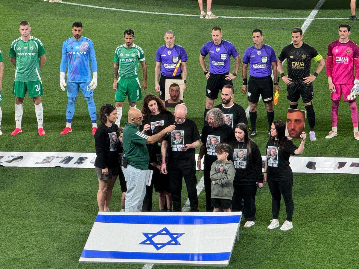 Keith Siegel told the Maccabi Haifa stadium today that hostage Matan Angrest, 22, “Taught me the songs of Maccabi Haifa... He talked a lot about the team." He then led the stadium in team songs in support of superfan Matan, who is still held in Gaza, Bring Matan home NOW. 🤍🎗️