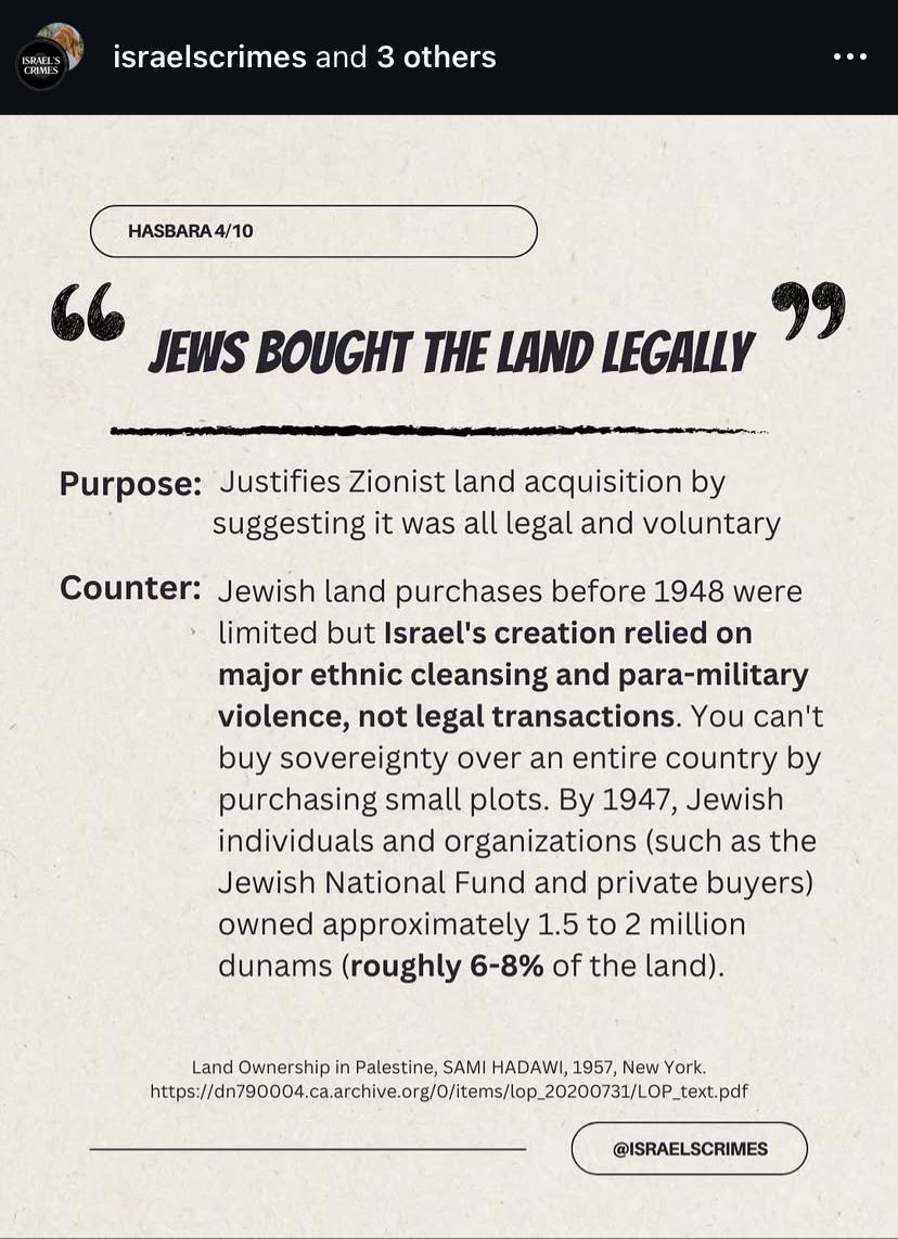 The argument isn’t that all the land was bought legally until they controlled the whole country. Jews bought land legally, then, the UN proposed the Partition Plan as a solution for the end of the British Mandate.
