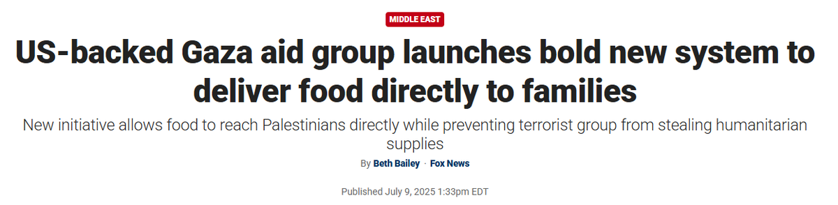 The GHF has just launched a new pilot project to distribute aid directly to communities across Gaza. Not only will this method prevent huge crowds from forming, but it will be extremely helpful to disabled and elderly individuals who would otherwise struggle to travel to aid distribution sites. It's such a positive development, I wonder how Hamas will paint it as an unmitigated evil?