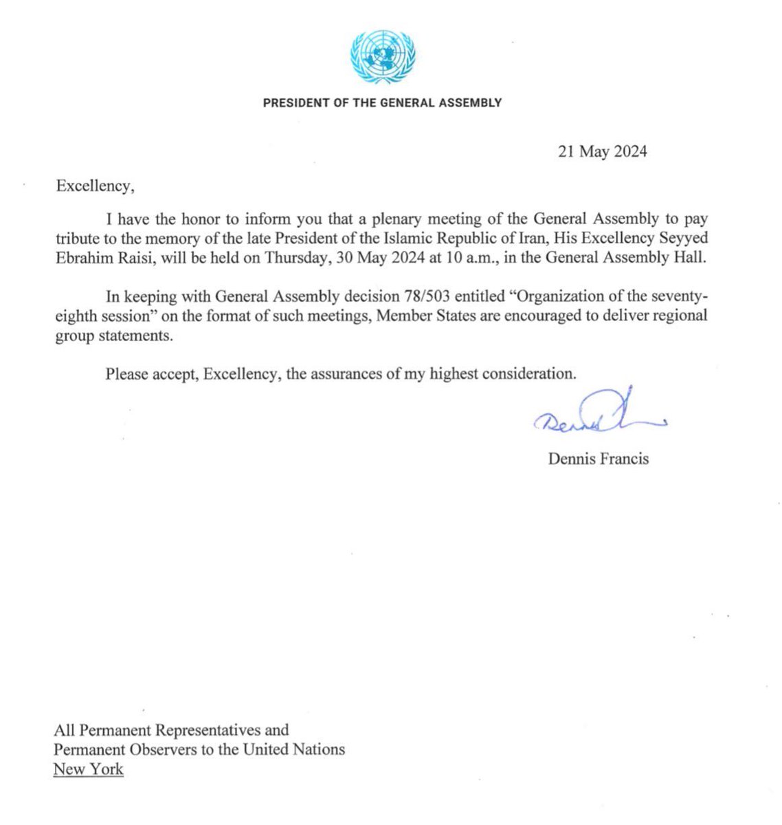 SHAME: UNGA to hold plenary meeting to “pay tribute to the memory of the late President of the Islamic Republic of Iran, His Excellency Seyyed Ebrahim Raisi.” @AntonioGuterres, why no memorial for the thousands Raisi executed? Or for thousands of protesters he killed and injured?