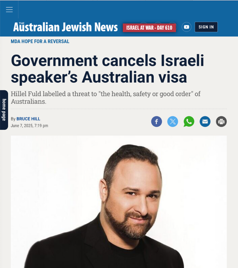 BREAKING: Australia bars entry to US-Israeli tech speaker invited to fundraiser for Magen David Adom, Israel's emergency medical service that saves lives of Jews and Arabs alike. Yet they welcomed pro-Hamas Francesca Albanese who was condemned by 🇫🇷🇩🇪🇨🇦🇺🇸🇳🇱 for her antisemitism.