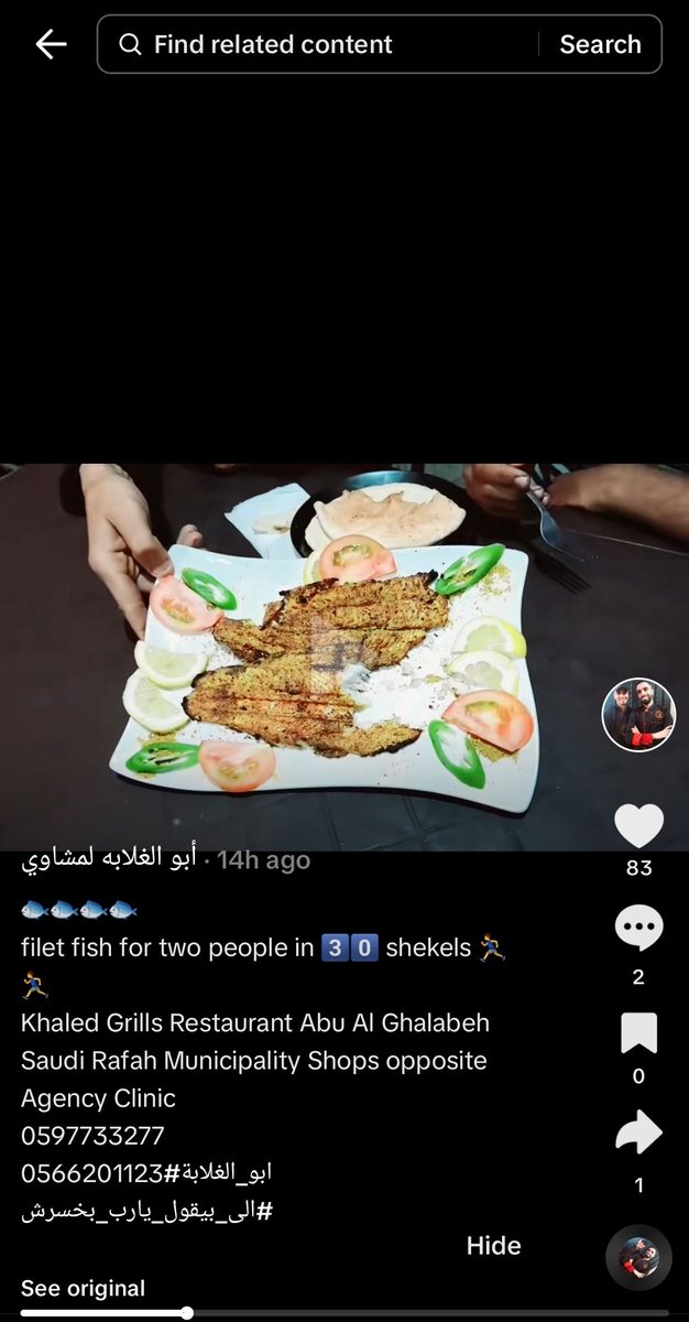 Fillet fish for two for 30 shekels ($8) at Khaled Grill restaurant in Rafah, south Gaza Strip. #TheGazaYouDontSee https://vt.tiktok.com/ZSFG7dQ3Y/