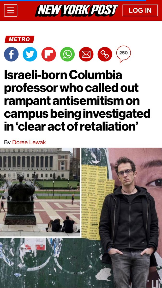 The Israeli-born @Columbia University professor who gained notoriety for ripping the school’s failure to address rampant antisemitism on campus revealed he’s under investigation by the embattled Ivy-a probe he said is a “clear act of retaliation and an attempt to silence me.” @ShaiDavidai an assistant professor at Columbia Business School, wrote Friday to his nearly 35,000 “X” followers that the university opened a probe into his “advocacy for the Jewish and Israeli students, faculty, and staff at the university.” “My problem is with Hamas and support for Hamas. I guess the university somehow thinks that supporting terrorism a protected class. That could be the only explanation for this investigation.” The beleaguered Ivy is under investigation by Congress and the US Department of Education, and is facing two lawsuits, brought by close to 20 Jewish students, for violations of their civil rights. https://nypost.com/2024/03/09/us-news/clear-act-of-retaliation-pro-israel-columbia-prof-probed/
